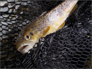 Au détour d’un chemin, un bonne dérive, un bon lestage. Et le regard surpris de cette truite modeste qui s’est fait surprendre .