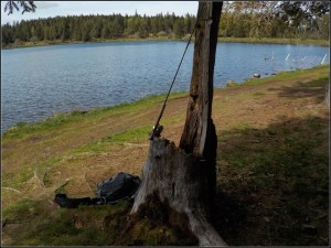 Des vents contraires, jamais favorable par retour de 18 années d’expérience sur ce lac, pas d’insectes sur la surface, cependant quelques gobages…L’ensemble canne Compétition soie de 7, cependant équipée d’une symbole DT6 fonctionnent bien, la DT amortit « le bourinnage » . Une WF après divers essais ne convient pas ici!
