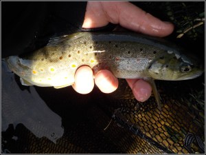 Un gobage furtif , il faut être réactif, juste le temps d’armer la canne, posé et fario prise, sans fausse modestie un beau coup de ligne …