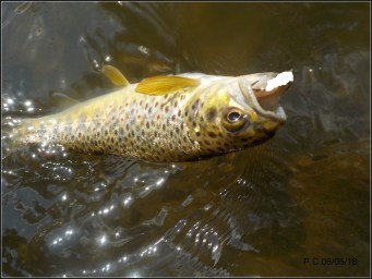Sortie en sèche ratée, cela traine au regard des eaux de neige, en NAF plutôt réussie sans que cela soit exceptionnel .La taille variera du 10cm au plus de trente (estimée 32 décrochée à l’épuisette ).