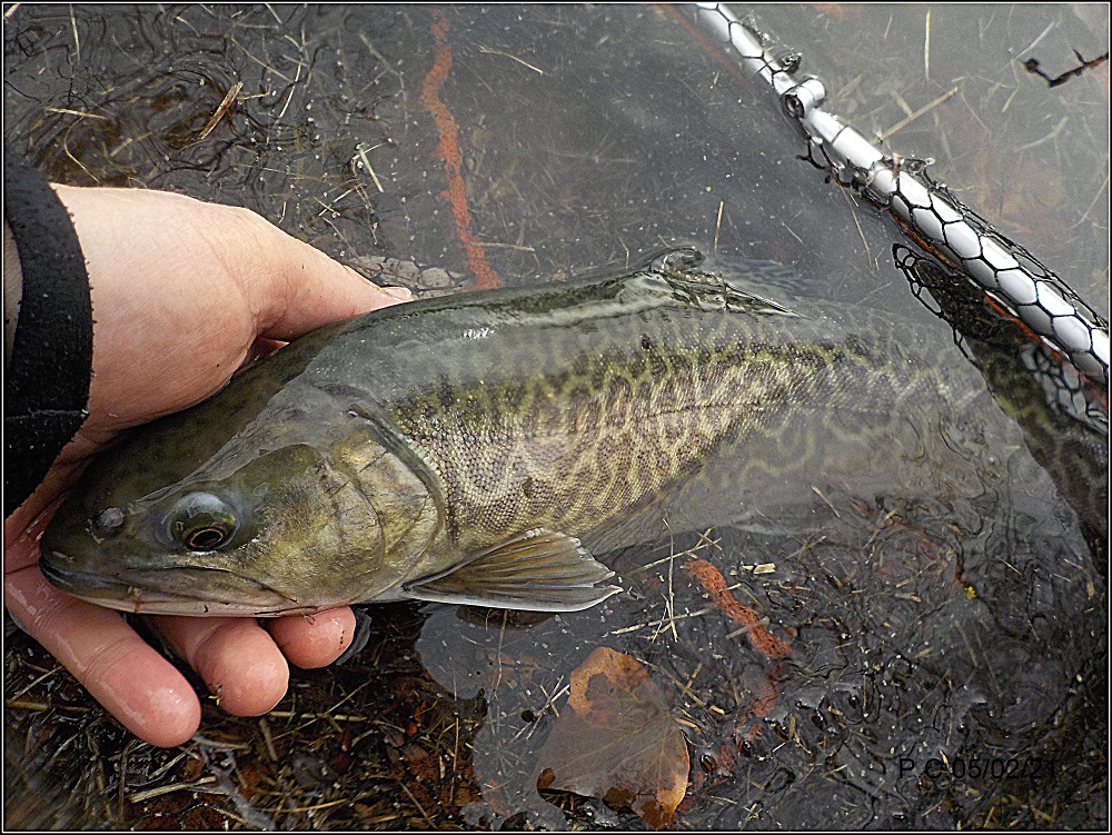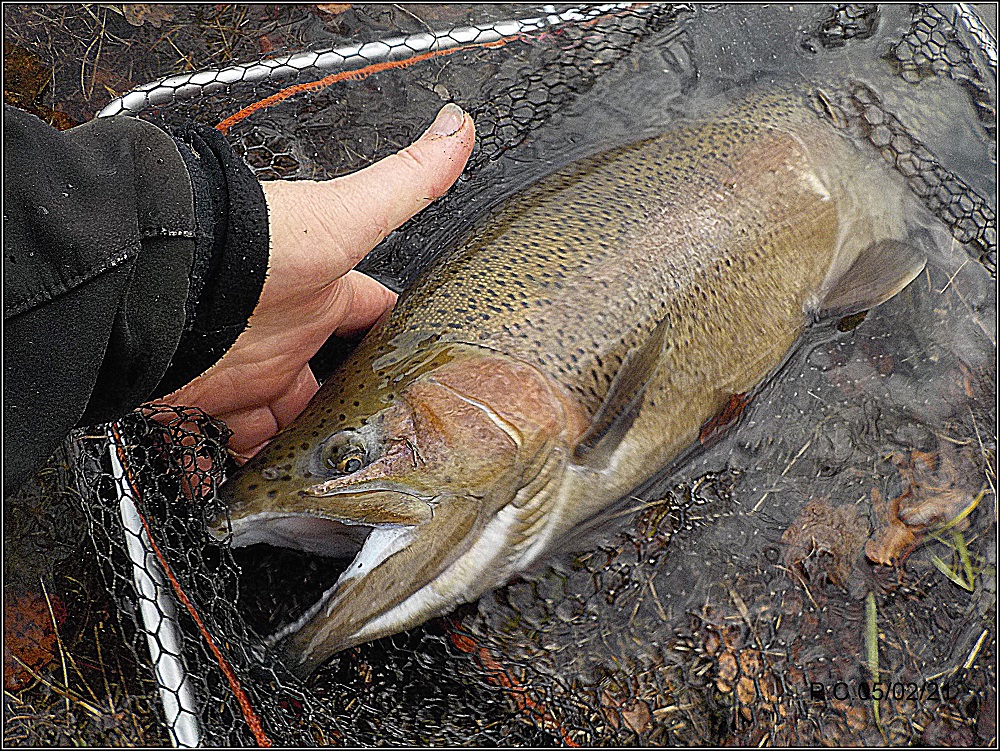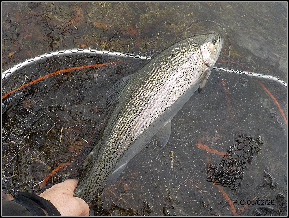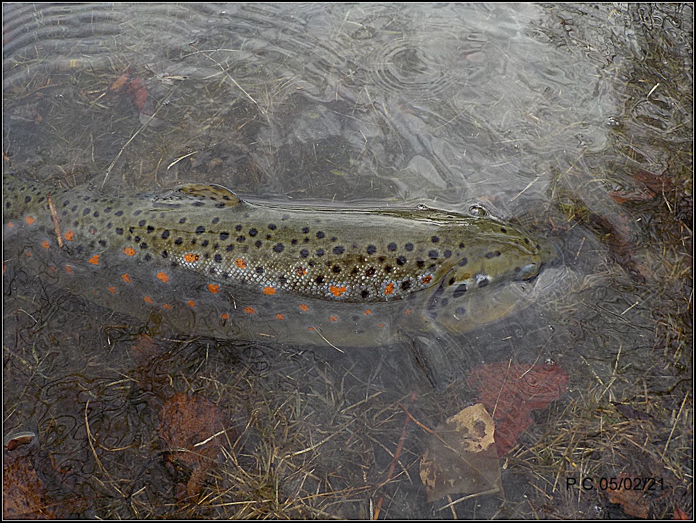 Je fais « patiner » la mouche en imitant le déplacement des insectes sur l’eau, un sillage un arrêt du poisson, ré accélération et re suivi et prise… une défense et une magnifique Léopard rejoint l’épuisette pour la photo . Un poisson que j’apprécie et surtout en sèche .