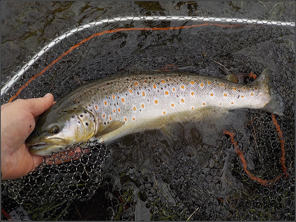 Le « bouchon » s’arrête et ferrage … sur cette splendide Fario…