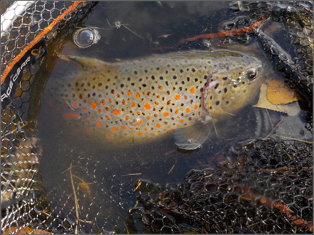 …Qui s’accroche et que je perds, je refais la pointe tranquillement remet un stream, relance, une tape, le lift me laisse entrevoir le poisson qui m’aperçois et part en courant… Je me cache vers la partie gauche du bloc, mais difficile de stripper le leurre, le risque de prise pourrais amener et casser le scion sur le rocher…Bien sur monter sur le bloc est à exclure en terme de discrétion. Tant bien que mal je trouve une solution en me mettant à plat ventre sur le bloc…Le ramener et nage bizarroïde du stream au regard de ma position peu orthodoxe séduit une magnifique Arc …