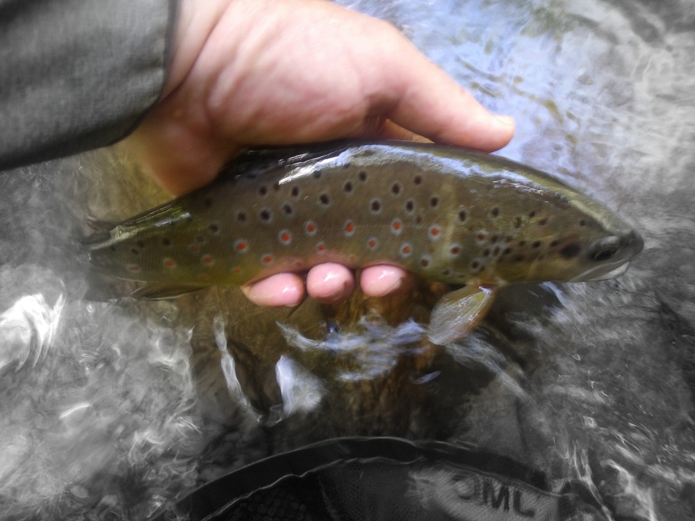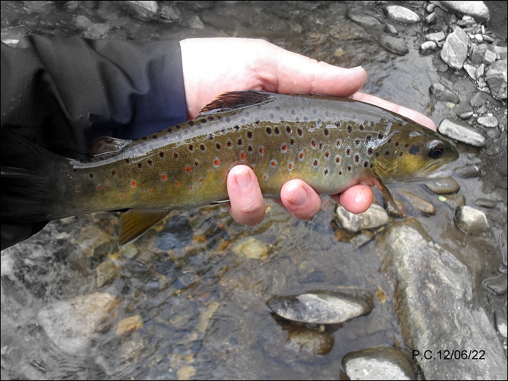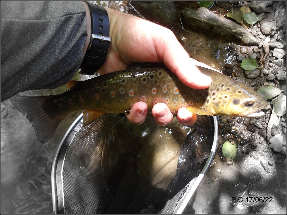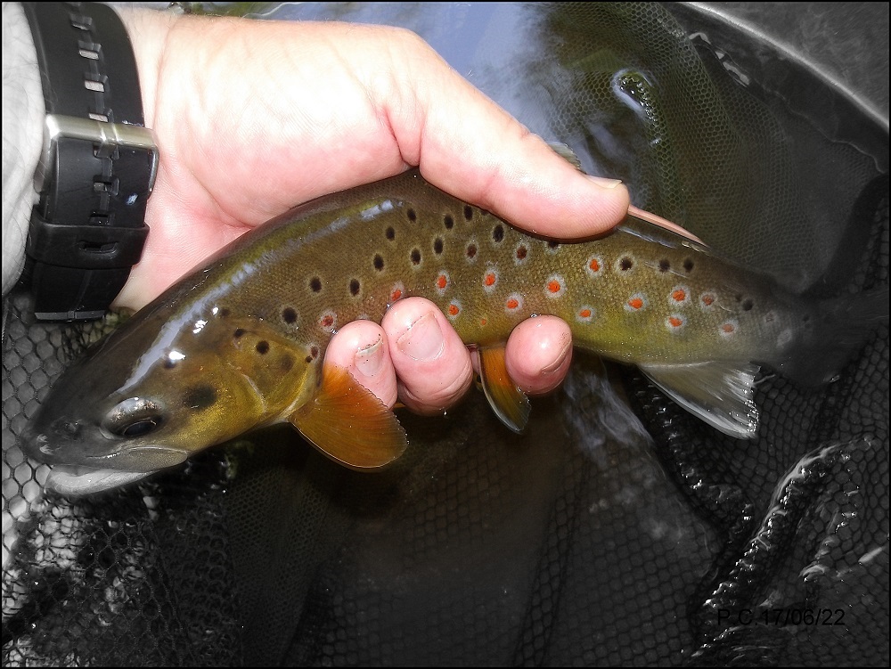 Arrêt du fil …et le coloris des truites de la Dordogne se caractérisent et sont affirmés par ces « yeux noirs  » un superbe poisson