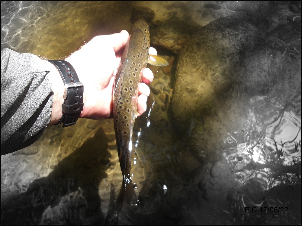 La canicule est arrivé en milieu de semaine et je retourne sur le spot, le niveau a dangereusement baissé, il fait 30 degré mais la température de l’eau est heureusement froide , pour un comparatif objectif , il s’agit d’une pêche digne d’un 15 Aout torride mais nous ne sommes qu’au 15 Juin …Les signaux d’alarme que je, nous alertons depuis 20 ans confirment malheureusement mes, nos craintes d’éclairés pour ne pas dire de voyants demeurés …Des donneurs de leçons tant politiques qu’écologique émettent des idées en place trop tardivement, comme d’habitude et voudrait imposer un diktat improbable et non négocié sur le cout des énergies (bien facile d’imputer la guerre en Ukraine et je suis solidaire bien sur de ce peuple qui subi une guerre digne du 19 ème siècle)… Je fais monter ma tension …Revenons à la pêche…