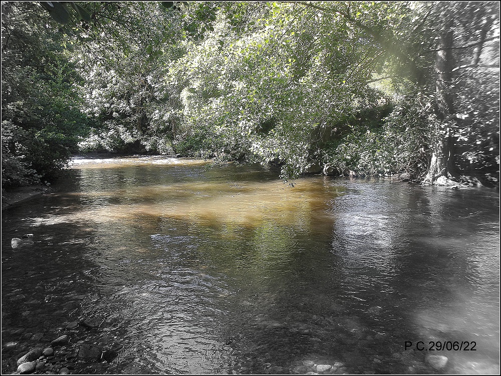 Les rivières refont le plein, et c’est tant mieux, mais pour le pêcheur addict que je suis, je cherche , consulte mes notes et un pari, une rivière qui monte rapidement et qui redescend tout aussi rapidement …, J’arrive sur le spot, désolé pour la qualité de la photo, comme vous pouvez le voire c’est encore tendu…