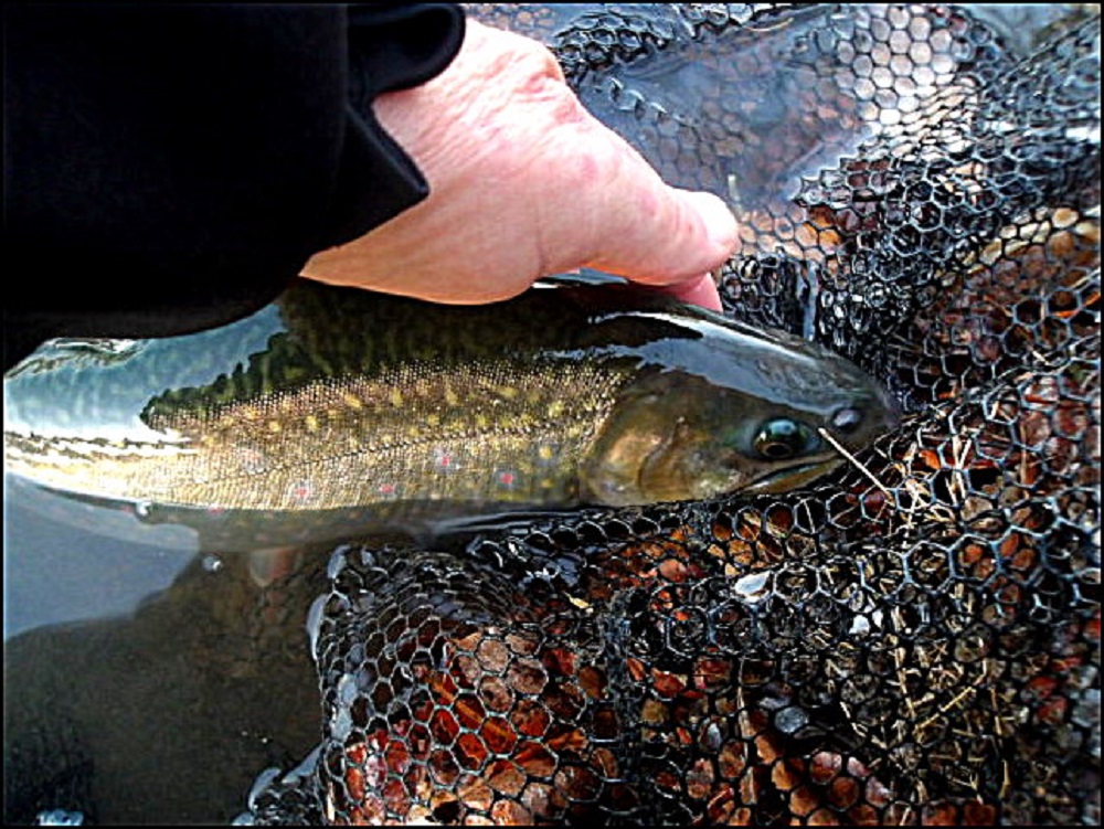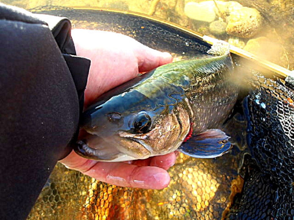 Pause casse croute anticipée et je me recasse la tête et enfin je trouve la solution sur ce montage de nymphe que j’avais oublié au fond de mes boites, un raté et enfin c’est parti les ombles sont voraces et mon imitation fonctionne à merveille.