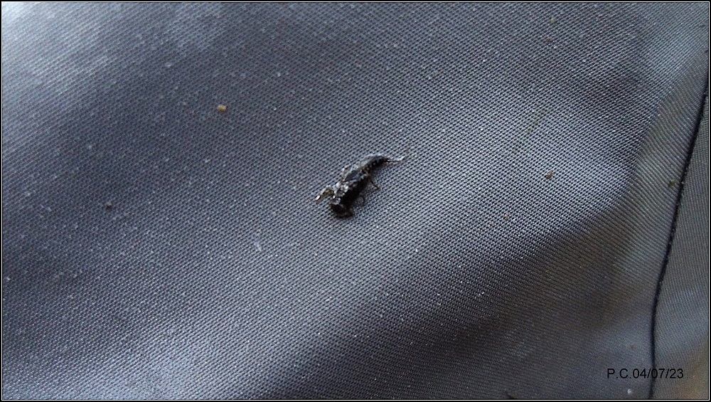Une véritable nymphe dont nous pouvons voir les segment est restée accroché à mon wader.