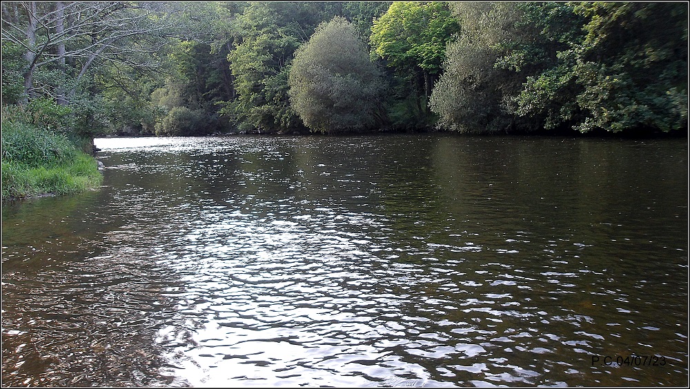 Après une après midi sans rien voir hormis un gros ombre décroché; la misère sur la Sioule, entre Kayaks et pataugeurs, l’été est là … J’allais rentrer mais je me dis de patienter .