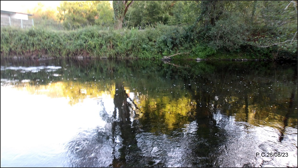 Les orages ont bien rafraichis et c’est une ambiance automnale en ce coup du soir sur la rivière. De rares gobages sporadiques de truites, rien de sérieux, quelques ombres se manifestent.