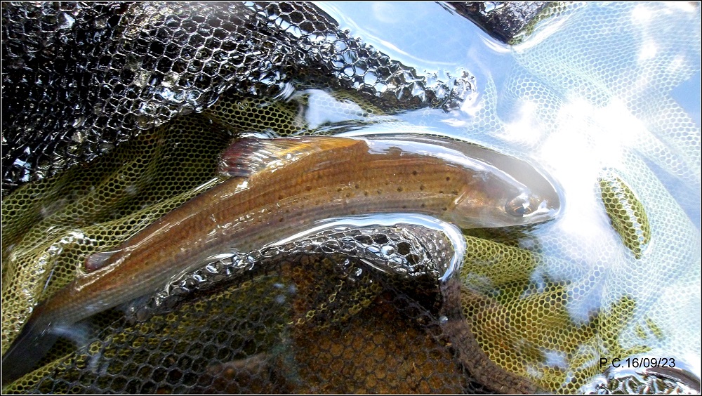 C’est bien tristement que se termine cette saison 2023 truite sur la Basse Sioule, pêche parmi les Kayaks qui raclent le fond…