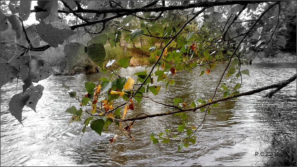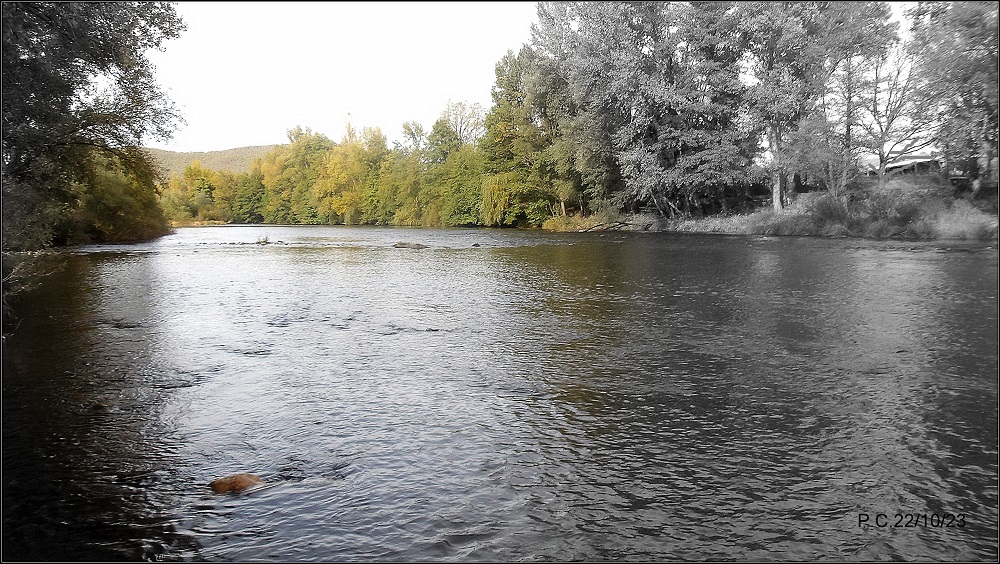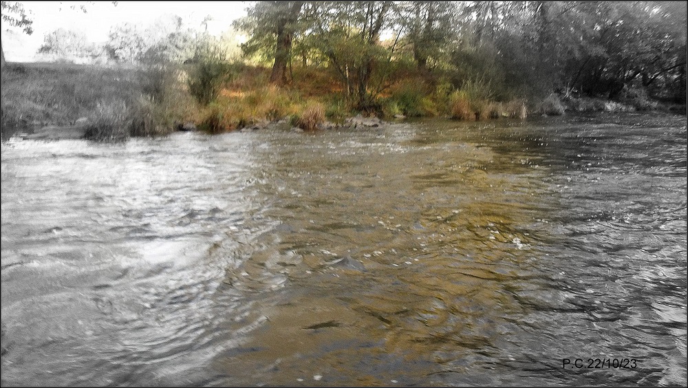 Une grosse pluie qui passe l’Allier à 20m3 en fin de semaine, cela fait du bien à la rivière. En ce Dimanche le niveau est repassé à 7m3 et je me dis que c’est jouable sur le Haut Allier. Sur le secteur du Puy de Dôme « la vague » arrive. Les couleurs de feu automnales habillent la rivière et mettent en valeur la session de pêche.