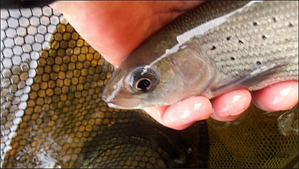 Je prospecte en noyée mais rien, même pas une tape d’une éventuelle arc. C’est en NAF que Thymallus viendra .