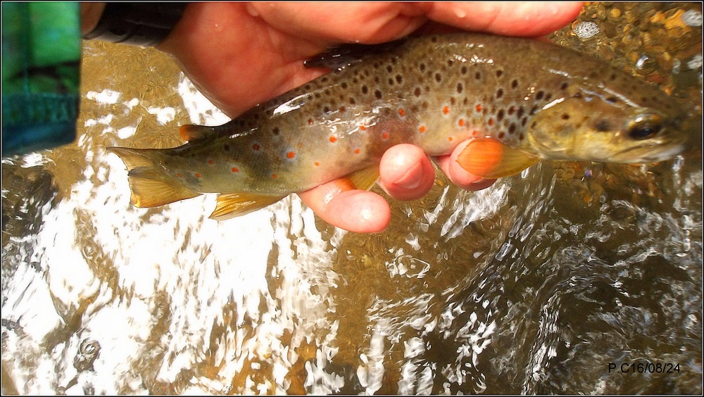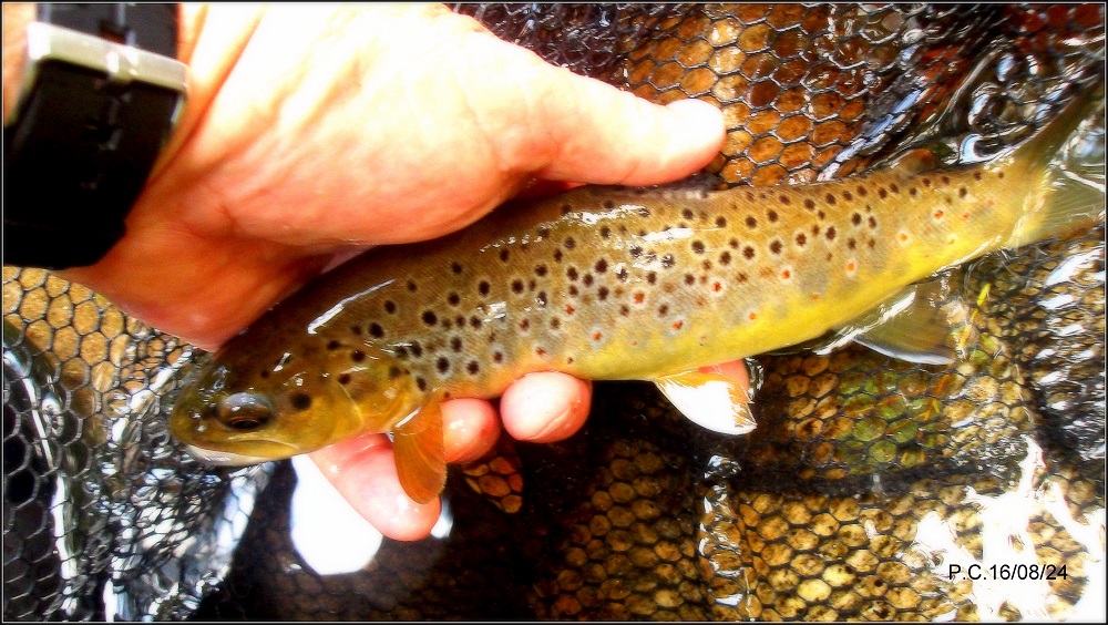 J’aperçois des leurristes qui vont plus haut, un 4×4 qui rentre du coup du matin, au delà du Nk …Le soleil brille de mille feu et je descend encore en taille de nymphe…