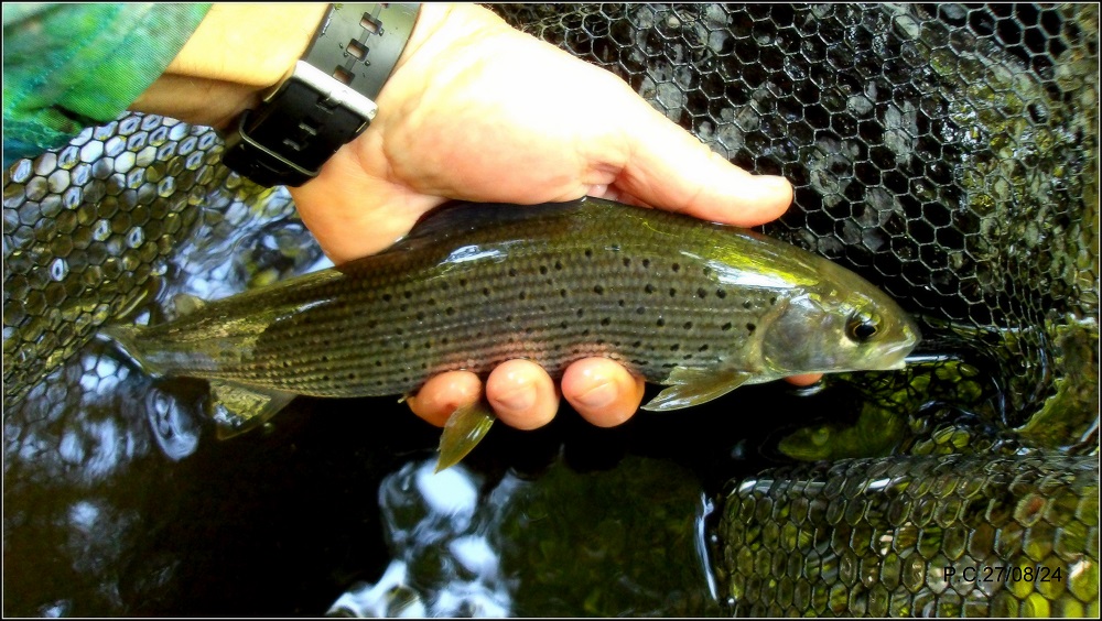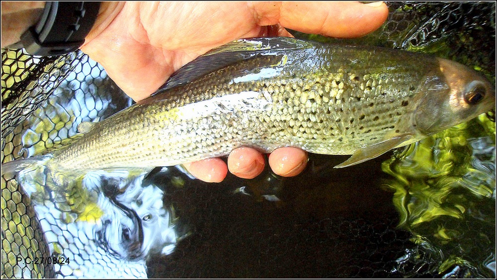 …une touche , une deuxième puis Thymallus Ligericus se fait surprendre , pas énorme mais par les temps qui courent..