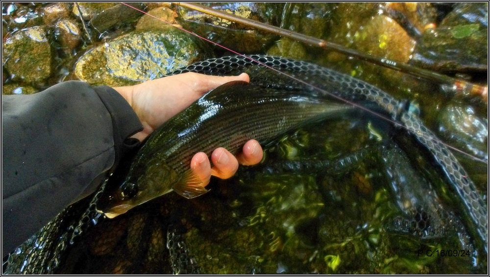 Finalement cette jolie truite conclura cette excellente saison sur l’ALAGNON. Les travaux de soubassement ne m’ont permis malheureusement de ne pêcher que le haut, très haut Alagnon . Cette pratique régulière sur le haut confirme l’excellente qualité du cheptel ombres et truites à préserver.
