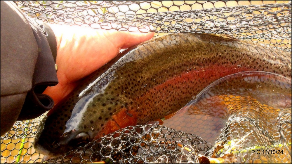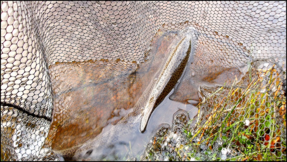 Les gobages reprennent, je casse malheureusement , changement de chiro et montée franche , elle file à pleine allure à droite, à gauche, au large mais finalement à l’épuisette, un joli poisson aux points noirs bien marqués et les joues roses du plus bel effet.