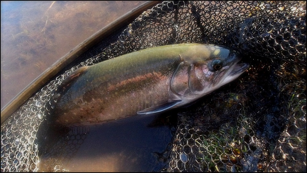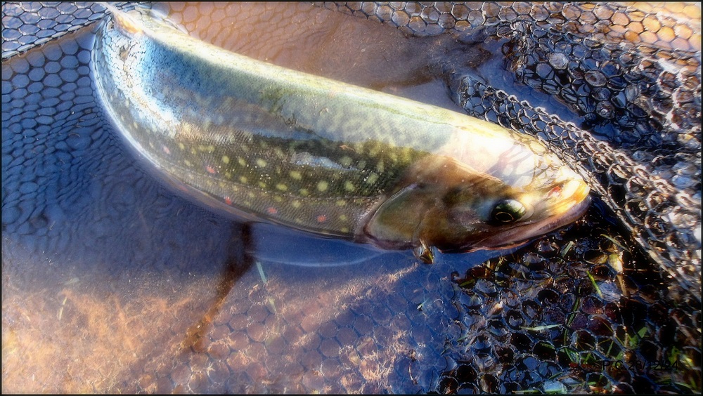 Puis plus rien je change de matériel pour passer en soie plongeante de type S3, une tape, mais rien, une autre qui cette fois m’arrache la soie des mains et j’épuisette ce splendide omble Alis