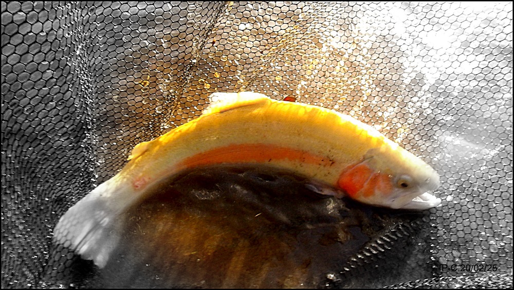 Journée de repos , un matin sans gel direction notre réservoir préférée , histoire de patienter avant l’ouverture 2025. Café avec la gérante Laétitia, montage des cannes et action .Les poissons sont bien actifs mais dans une profondeur relative .Une fois les réglages affinés les prises vont s’enchainer, que ce soit au stream ou en Nymphe jusqu’à 15h00.