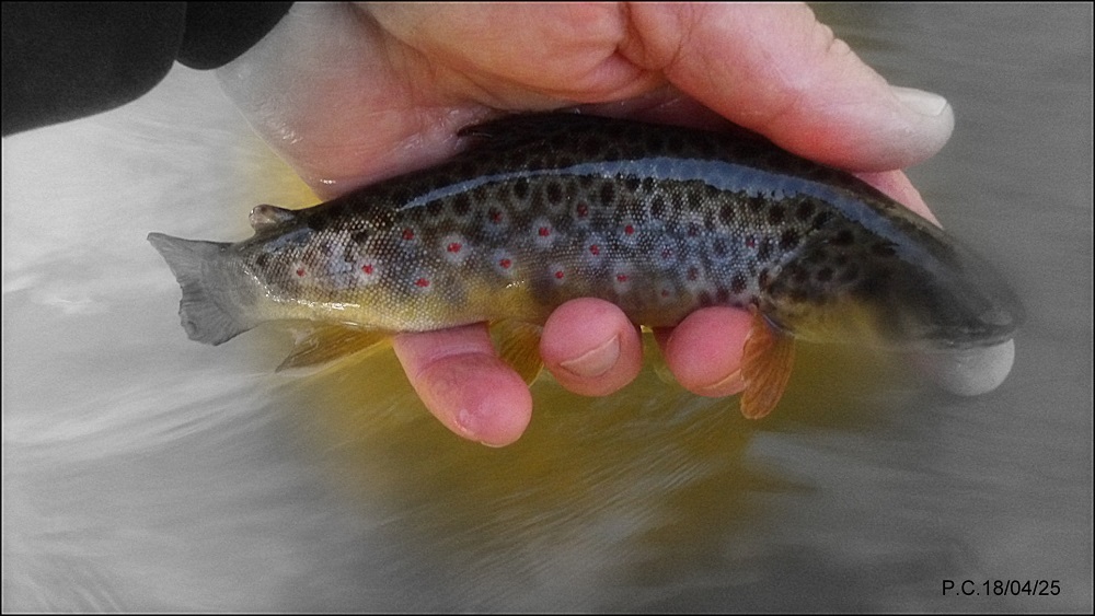 Le niveau est en train de baisser , une mouche mais pas d’éclosion digne de ce nom. Il faudra patienter pour voire gober un poisson, dernière prise en nymphe .Demain sera un autre jour.