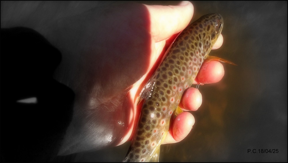 Journée ensoleillée mais un petit vent frais nous rappelle que nous somme en Avril et comme dit le dicton ne te découvre pas d’un fil. Les premiers camping car sont arrivés et une petite remarque à ce pêcheur, avec une grosse cuiller trident et ardillons, qui ne prend pas le bon chemin et se dirige tout droit dans le No kill, j’insiste un peu et il se ravise et va plus loin.