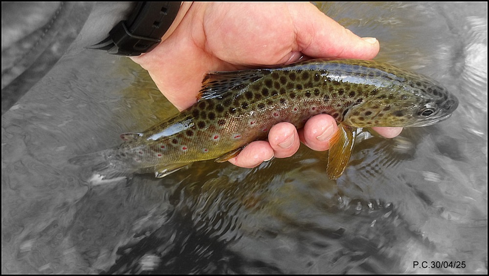 Un bilan d’Avril globalement satisfaisant sur 15 sorties uniquement sur la Haute Sioule, même secteur, avec toutefois 2 ou 3 sorties qui se seront révélées médiocres, de beaux poisson pris régulièrement, des sorties parfois compliquées au regard des conditions météo changeantes. Des niveaux qui se sont refaits aprés quelques orages, mais la chaleur annoncée peut vite changer la donne. Le vent bien sur omni présent source d’insuccès car difficile de maintenir les dérives. Adaptation en pêchant amont court semi plaqué, technique que je vais développer au fil du temps ainsi que la pêche au fil posé, nous en reparlerons. Et surtout les premières prises en sèche sur de rares, trés trés rares éclosions digne de ce nom.