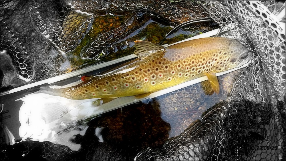 Le couple de nymphes a juste le temps de dériver qu’une tape brutale se fait sentir. Belle défense les poissons ont pris du « bide ». Une 32 cela fait plaisir.