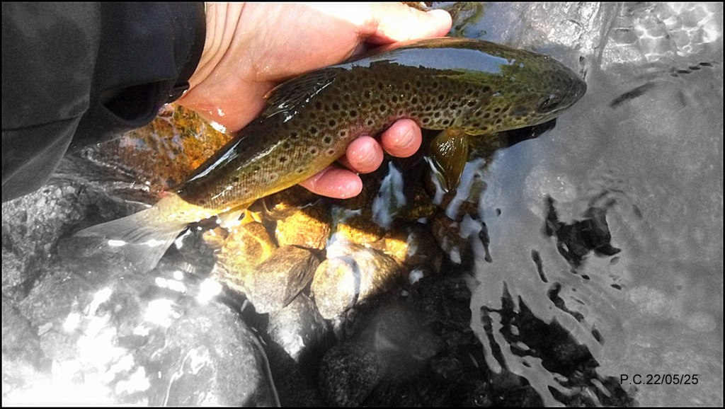 J’accroche ma nymphe, vais pour la décrocher mais un peu de chance elle se défait d’elle même de son emprise, un signe, je relance et jetez un oeil sur la vidéo ci dessous