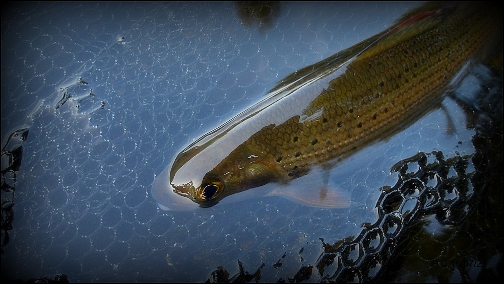 Bien sur bien laisser l’ombre dans l’eau pour la séance photo, le laisser récupérer tranquillement d’autant plus que la pêche est fine coté diamètre fil, le 10/100ème étant la norme.
