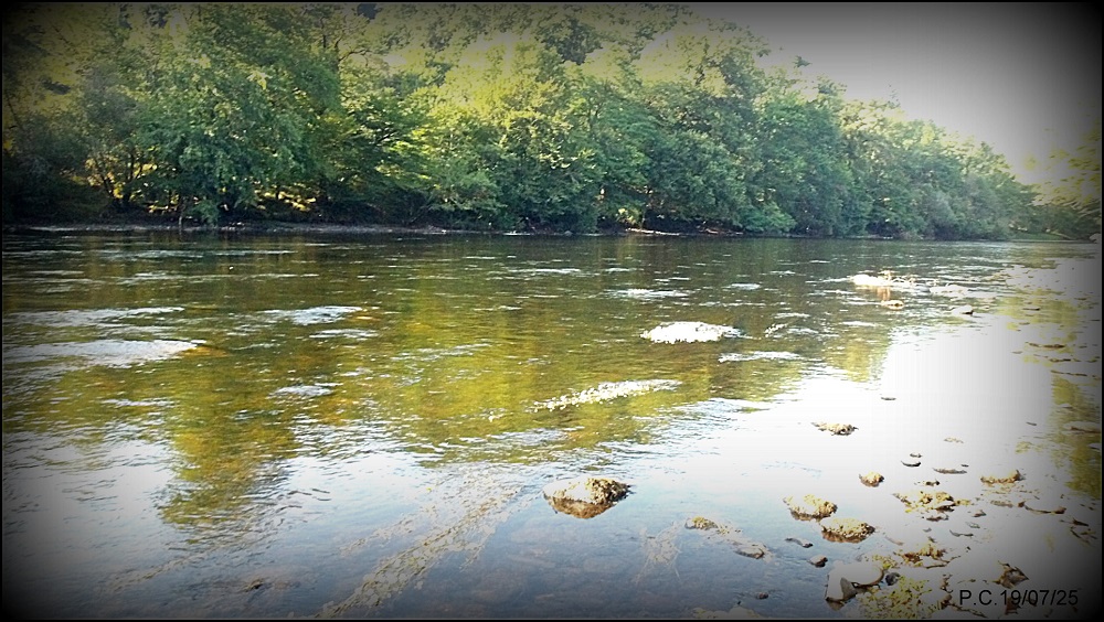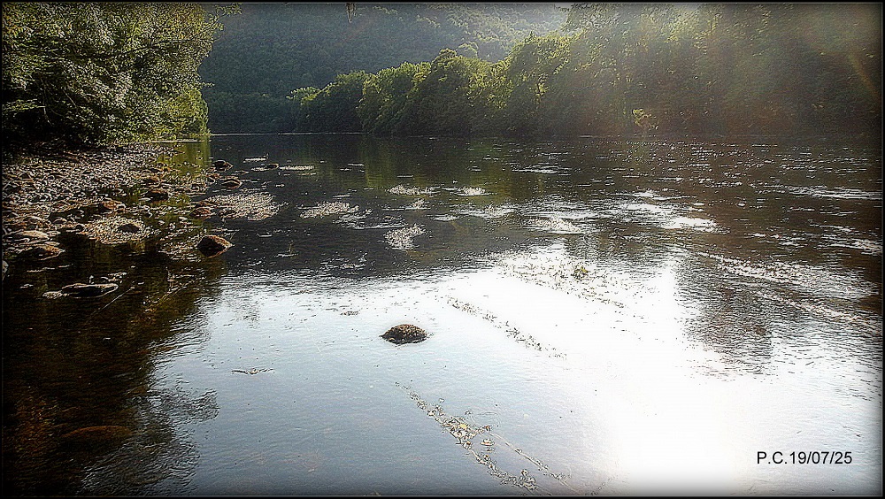Durant la journée, par une chaleur caniculaire, la pêche reste possible en NAF (Nymphe au Fil), j, les barrages tant décriés distille avec régularité une eau relativement fraiche, ce qui est vrai uniquement sur la partie argentacoise. Sur la photo ci dessous la réverbération du soleil sur les renoncules.