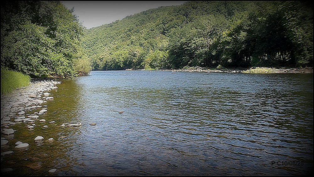 Je sais que la journée sera longue pour arriver au fameux coup du soir et espérer avoir une belle éclosion de mannes « Oligoneuriella » pour les intimes. Ne voulant pas rester enfermé je me pointe par plus de 35 degrés sur les midi au bord la rivière Espérance qui affiche un débit tristement bas de 14m3.Des hordes de kayaks défilent et autres baigneurs, c’est pour cette raison que je ne viens en principe pas à cette époque, mais cette année j’ai la chance de découvrir la Dordogne quasiment tous les mois et plusieurs fois par mois du reste. Les niveaux bas sont maintenus légèrement plus frais par le barrage du moins sur la partie haute il faut le reconnaitre. Je me cale dans un courant et prospecte en nymphe derrière le trou formé par deux blocs que globalement, je dis bien globalement les kayaks évitent. La horde défilent dans des vociférations allemandes ,anglaises et françaises bien sur, les rames qui cognent l’embarcation, le pompon sera quelques ados attardés dans un kayak d’où émane un fort relent de cannabis sur un rythme boum boumboum de basse qui agit sur ma tension… J’arrive à prendre quelques tacons casser une belle truite et décrocher un gros ombre en dix centièmes. Une surprise; un kayak dont son propriétaire se met à l’eau quelques dizaine de mètres en amont d’où je me trouve, je commence à maugréer en fait je comprends que c’est pour indiquer le chemin à prendre à ses stagiaires pour m’éviter, comme quoi… Un peu plus tard je salue les pompiers qui descendent tous les jours eux aussi en kayak afin de prévenir un accident. Puis sur les 17h00 le calme commence à revenir, je remonte à la voiture pour monter ma canne sèche.