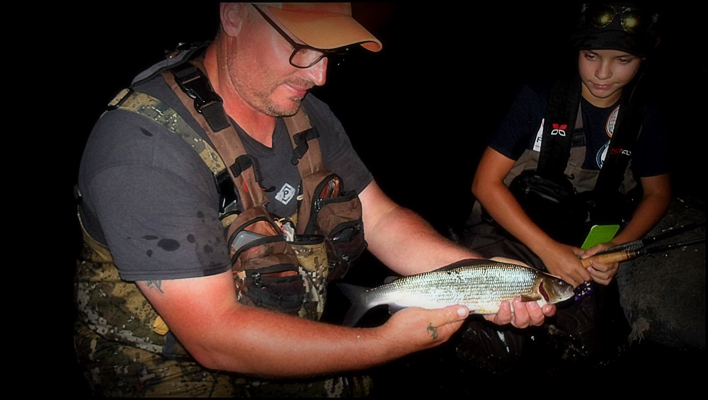 Il est 21h30 l’éclosion tant attendue est là, l’heure légale de fin de pêche est 21h43 pour être précis, il faut être rapide est précis. Je décroche un premier sujet, en rate un autre et enfin le Graal: un ombre sur une manne, banal me direz vous mais …