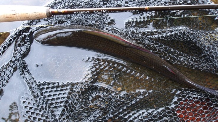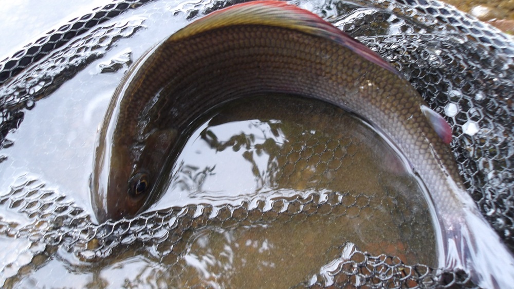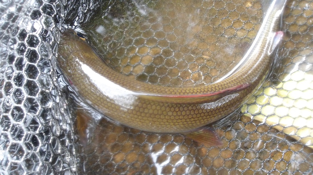 Direction le Haut Allier pour une session qui verra quelques gobages , au départ ce sont des tacons, puis finalement Thymallus monte également, je noue ma mouche fétiche , me positionne pour que le vent ne ruine pas mes lancers et assez rapidement montée et épuisette.