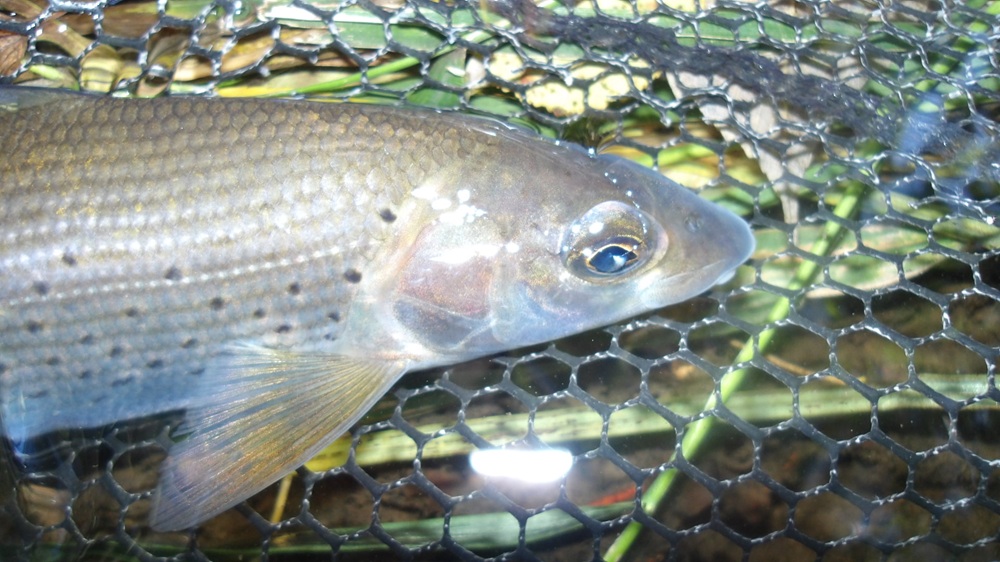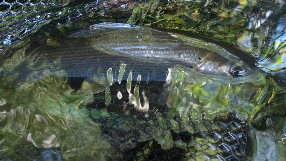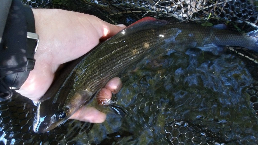 Je laisse dériver mon imitation qui ne saurait laisser Thymallus indiffèrent si celui ci à le nez en l’air, et gobage ferrage légèrement à retardement et Thymallus pose et retourne à son monde, à peine surpris.