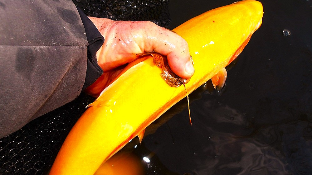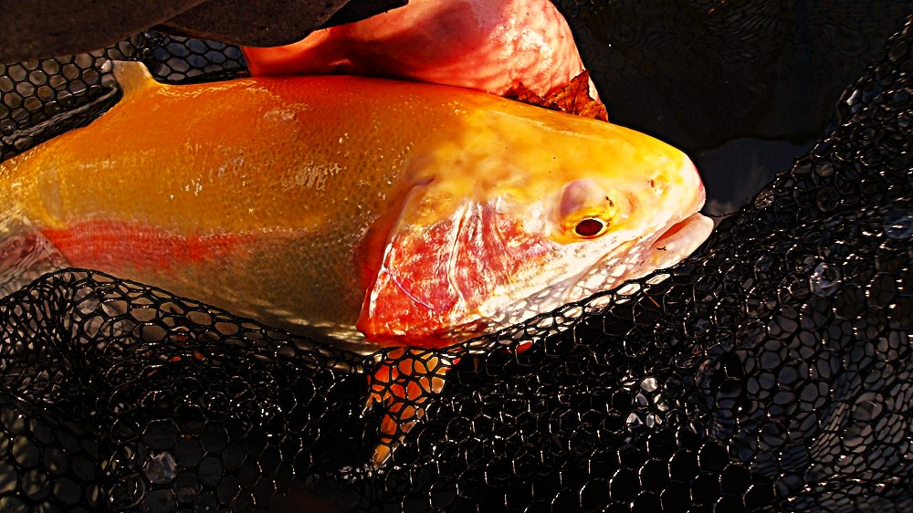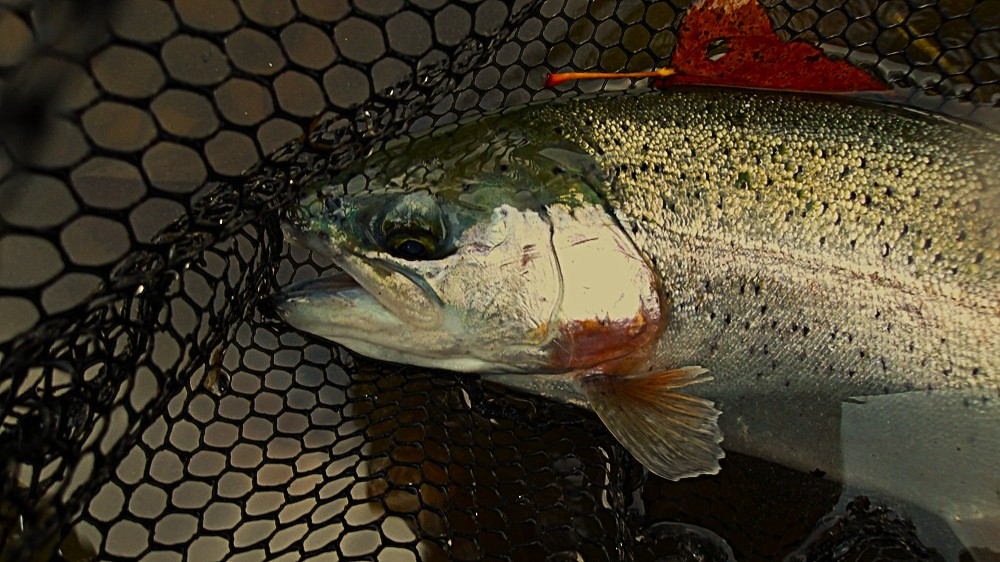 Une tape légère sur le streamer, mais sans suite , une autre , je ramène mais en ralentissant la cadence . Conséquence directe , la ligne se tend, belle bagarre, épuisette et séance photo avant un retour à l’eau.