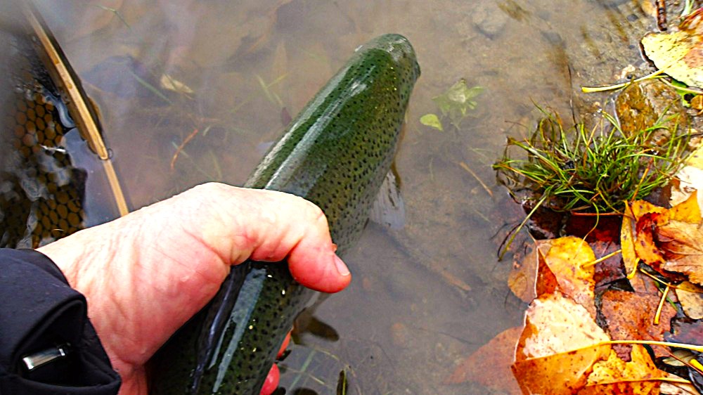 Les arcs au fil de la matinée deviennent actives, je les vois sortir du fond pour se jeter sur le stream, je me fais surprendre régulièrement, l’eau est encore foncée, logique à cette époque, feuilles mortes sur le fond…
