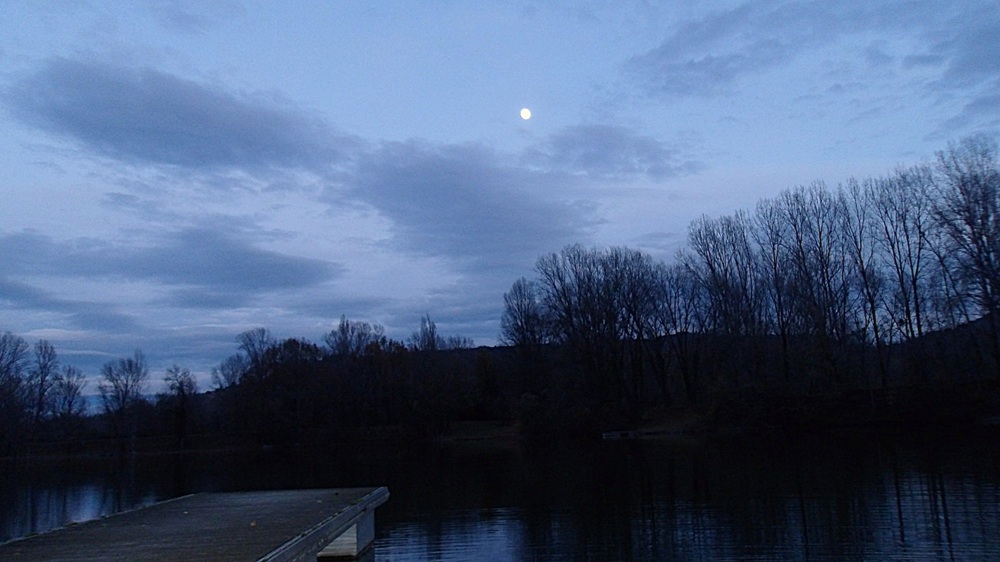 La session se termine , la pêche n’a pas été facile mais au final je tire mon épingle du jeu, au passage l’eau commence à s’éclaircir, la saison des feuilles se termine .Je lève les yeux et vois la pleine lune, seul St Pierre connait son influence sur le comportement des poissons du domaine .