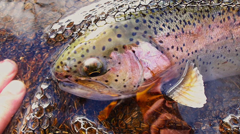 C’est au stream que je prends ce superbe bécard du Gerris, la bataille a été violente de la part de ce poisson en pleine forme ragaillardi par une eau froide, je dirais même glaciale .