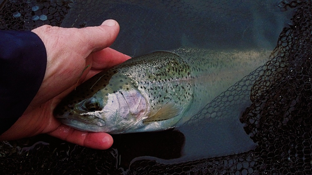 C’est au streamer que j’ai ma première touche et premier poisson qui me prend 20 mètres de soie et ne sera pas coopératif pour rejoindre l’épuisette.