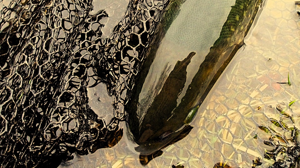 Le lac est monté de manière impressionnante, alimenté par les infiltrations de l’Allier, dont le débit atteint 315 m³ à la station de Vic-le-Comte sur RiverApp. Si la première heure rapporte au streamer de belles prises, comme ci dessous, cette agua qui de fait surprendre.