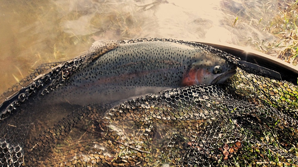 C’est au stream que je prospecte , premier poisson pris en arrivant en cette fin de matinée, une belle défense et épuisette avant de repartir sans demander son reste.