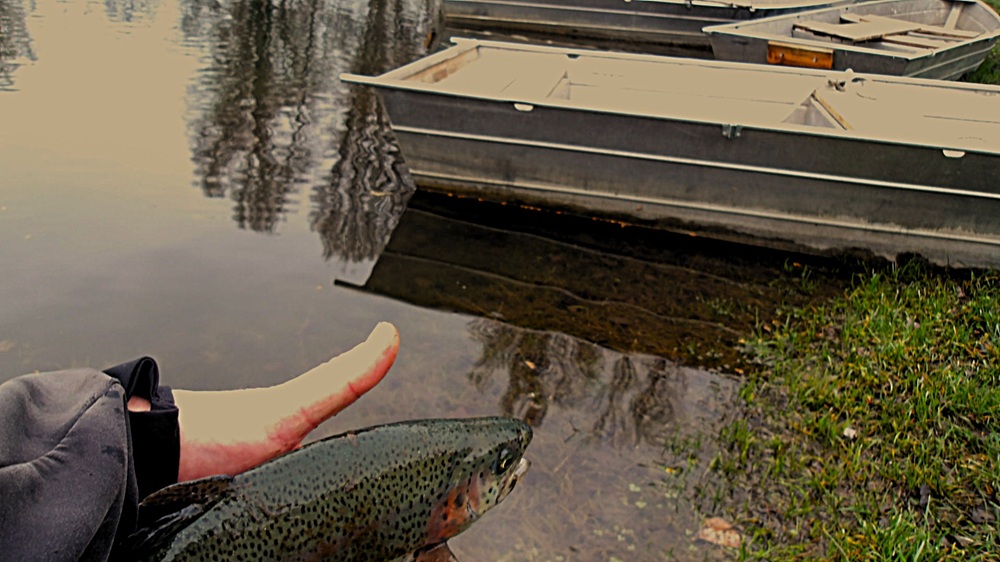 Le Lac étant privatisé ce Dimanche, réservé par un club du département voisin, je vais au domaine ce Samedi pour une session de pêche que j’attends avec impatience. Le lac est toujours haut, bien qu’ayant baissé de quelques centimètres, me dit la gérante , car cela peut changer le comportement des poissons. Personne d’autre n’est présent aujourd’hui, et je sais que le réservoir est riche en poissons, ce qui me rassure. Pour peu que les truites soient actives, cela devrait être une bonne sortie, et j’espère en tirer parti au maximum. Je commence ma pêche au streamer par une journée couverte, avec un peu de vent pour animer la surface du lac, créant des ondulations qui peuvent tromper les poissons. Une légère pluie est annoncée pour l’après-midi, mais je suis prêt à affronter les éléments. De suite, je réalise ma première prise, suivie rapidement de ma deuxième, puis de ma troisième. Les arcs-en-ciel sont alertes et défendent vaillamment leur peau, luttant avec force et agilité, ce qui me procure une satisfaction immense à chaque combat. Cette expérience en plein air, face à la nature, ravive en moi une passion profonde pour la pêche, et je savoure chaque instant de cette journée prometteuse.