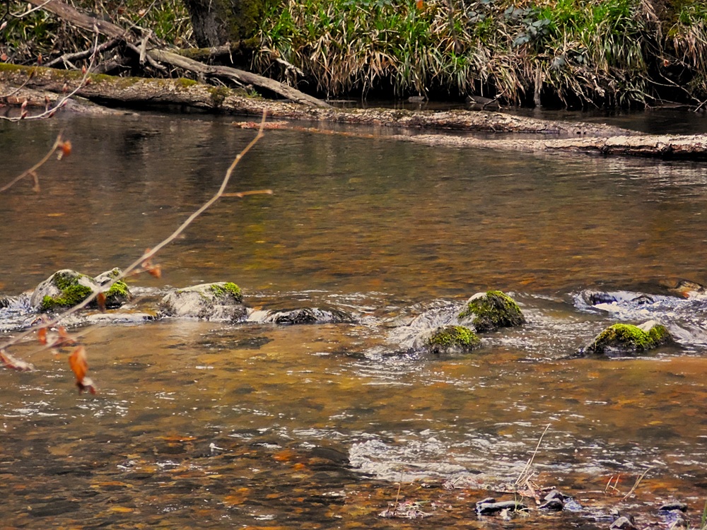 La, sur cette eau , la partie plus claire, sableuse peut s’avérer plus chaude avec un rayon de soleil, et possibilité pour une truite de sortir. En effet, lorsque les rayons du soleil réchauffent doucement la surface de cette eau translucide, transformant les zones sableuses en zones alimentaires propices pour la faune aquatique. Les truites, attirées par l’augmentation de la température, sortent parfois de leur cachette
