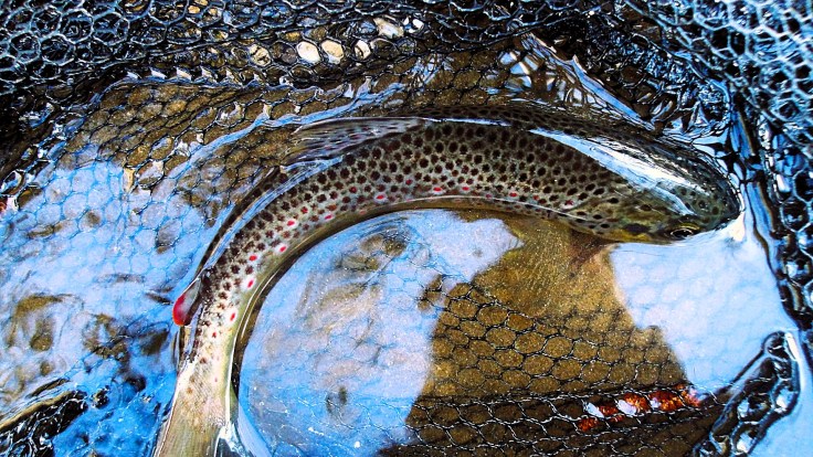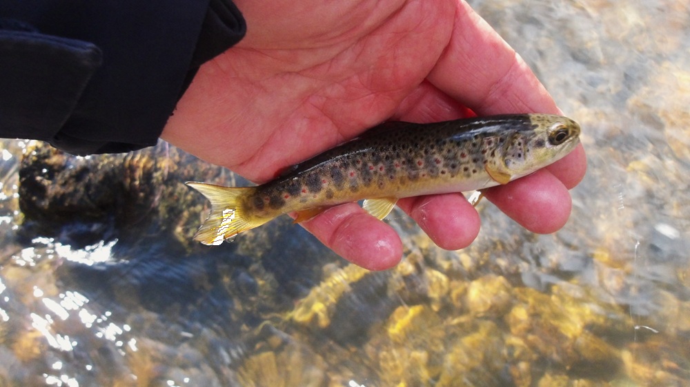 Des truitelles bien actives et affamées à la recherche de larves et d’insectes, dans les eaux claires se précipitent à la recherche de leur prochain repas.
