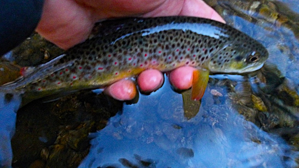 Je prends une petite truite et tente d’en attraper une autre, mais elle suit ma nymphe sans succès. Je décide alors de changer ma technique en modifiant la taille de la nymphe, espérant que cela attirera davantage l’attention de ce poisson malicieux. mais je la calerai , ce sera pour une autre fois. Puis mon compère de la session prend un poisson avant de me quitter .Je poursuis la session seul …