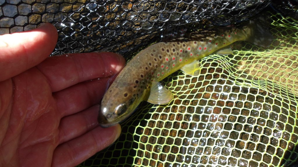 Une tape brutale me sort de mes errances intellectuelles pour me ramener à la pêche, une jeune fario qui j’espère trouvera des eaux toujours fraîches pour prospérer dans ce monde aquatique. Il est essentiel de préserver son habitat, car sans des rivières saines et des paysages préservés, cette beauté fragile pourrait disparaître, emportée par les caprices de l’homme et la pollution.