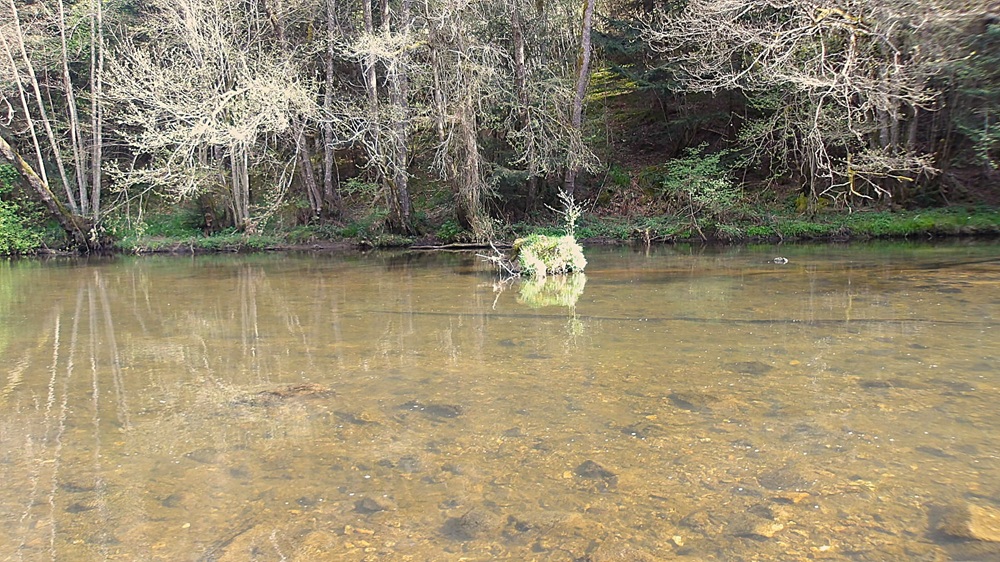 Les truitelles nombreuses tapent dans la nymphe, comme c’est souvent le cas en ce début de saison, ce ne sont pas des loupés mais c’est ainsi, ce qui fait que les touches « électriques » sont nombreuses et font pester le pêcheur. Rien n’y fait changement de nymphes, pointe, patience en espérant qu’un poisson de taille supérieur vienne.