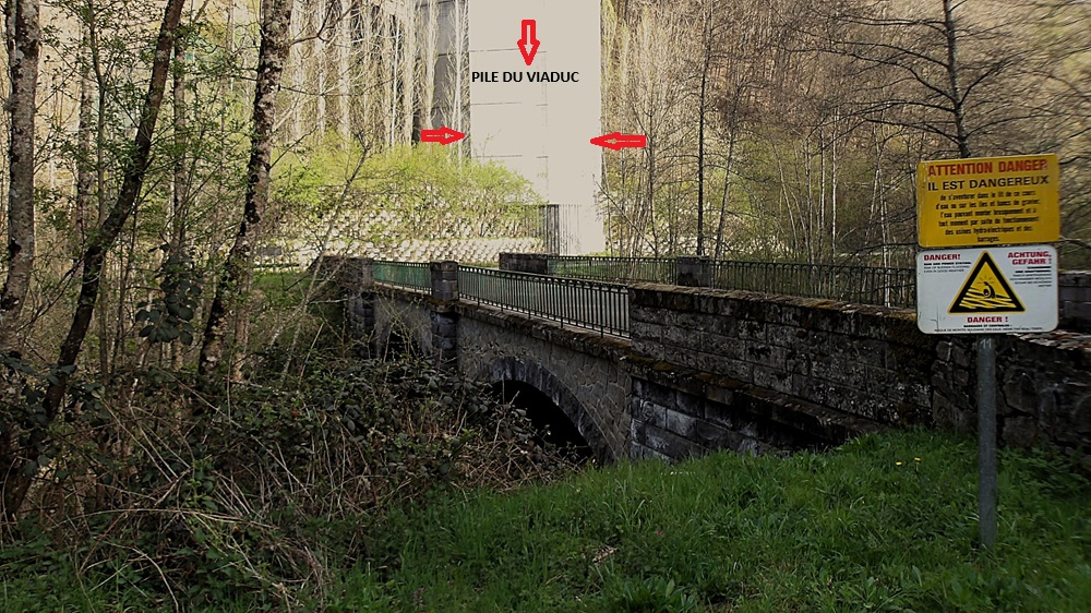Le pont de circulation de la route actuelle du pont bleu refection 2013 (lien ci dessous), avec la pile du viaduc en arrière plan..