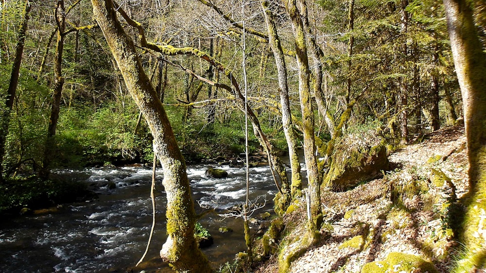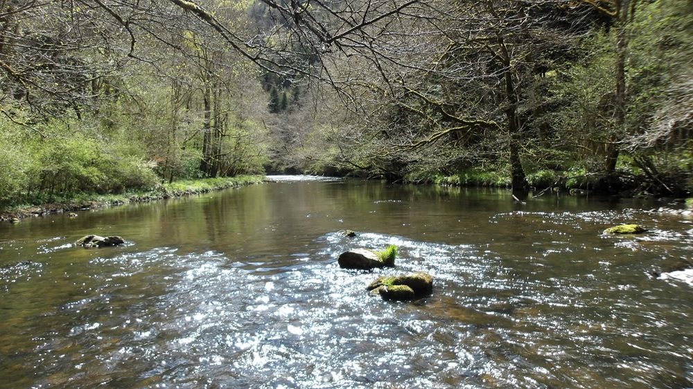 Revenons à la session de pêche, je débute ma session en aval des ponts, le temps est chaud , l’eau claire met en évidence un fond colmaté, de la matière organique se dégage lors du passage du pêcheur dans l’eau et trouble la rivière, ceci sera un bon témoin d’alerte pour les truites… Je prends le sentier qui longe la rivière entre bloc, mousse, et arbres.