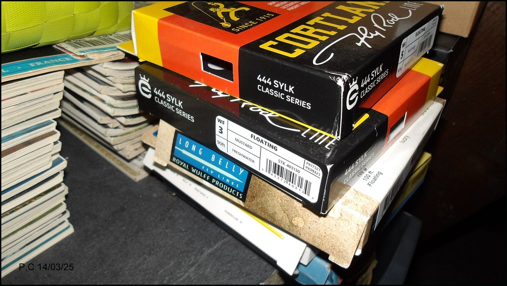 Les soies naturelles trés agréables demandent cependant de l’entretien, un compromis avec les soies de Lozère de chez Michel Sandon indestructibles (profil parallèle) idéale pour les petites rivières. Pour les synthétiques actuellement j’utilise , Cortland Sylk WF3, WF5,Lee Wulf Long Belly WF4 .Une WF5 Naturelle de chez pêche à soie.